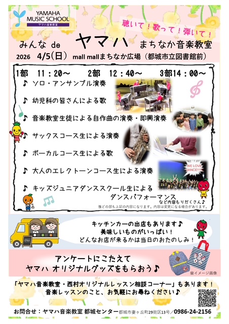 西村楽器 都城店より「みんなdeヤマハまちなか音楽教室」のご案内です。