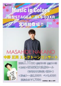 大淀店ホールにて『Music in Colors 中野 正英 エレクトーンコンサート』を開催いたします。